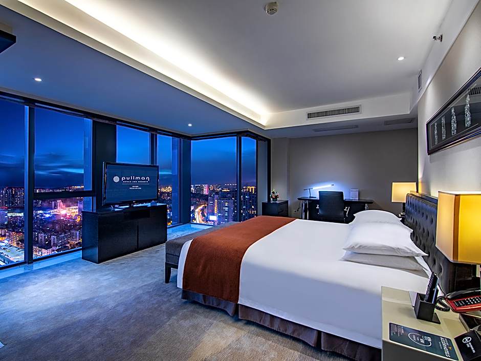 Corner room features irregular space, a LCD TV with cable and satellite channels, iPod dock, mini-bar, safety deposit box and tea/coffee maker.