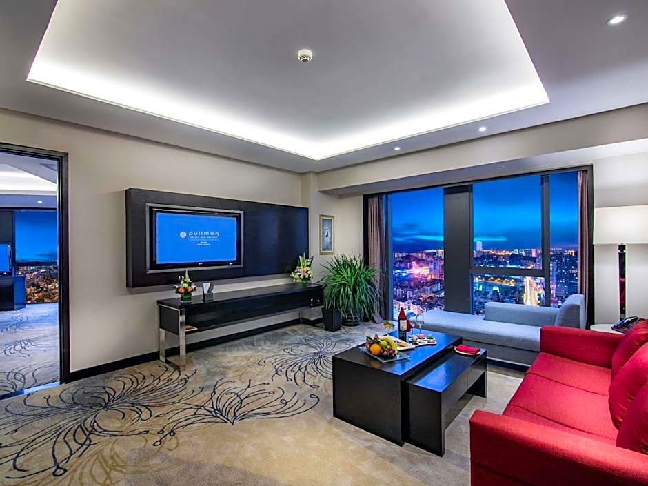 Spacious suite features a seating area with sofa, guest toilet, LCD TV with cable and satellite channels, iPod dock, mini-bar, safety deposit box and tea/coffee maker.